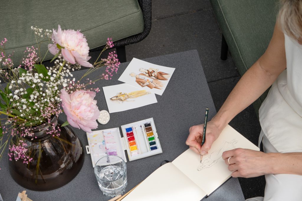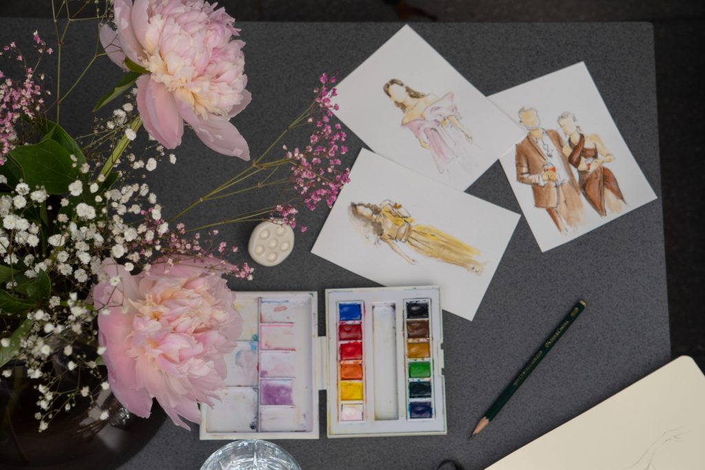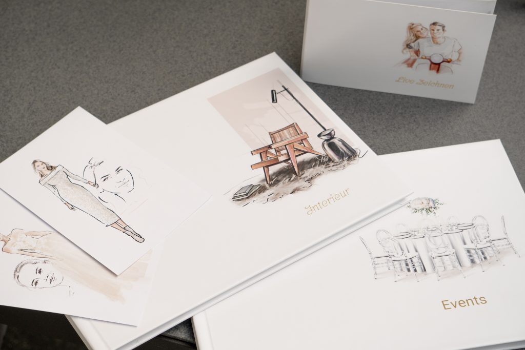 Ich unterstütze dich – und auf Wunsch auch deine Kund*innen – mit Visualisierungen und Live-Zeichnungen bei Projekten im Interior- und Eventbereich. Ob auf Hochzeiten, Messen oder Business-Events: Mit viel Gespür für Details halte ich besondere Momente live auf Papier fest oder mache Ideen in Form von Illustrationen sichtbar.